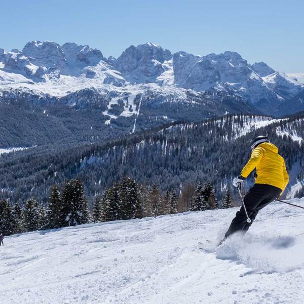 Durante la settimana bianca all’Hotel Caminetto potrete divertirvi su 150km di piste che attraversano un territorio a dir poco meraviglioso. La Skiarea Campiglio Dolomiti di Brenta-Val di Sole-Val Rendena abbraccia infatti le montagne di Folgarida, Marilleva, Campiglio e Pinzolo: sciando passerete dai fitti boschi di conifere ai pendii assolati delle Dolomiti di Brenta.
